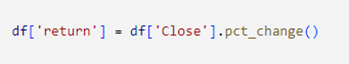 Return is calculated as the percentage change in the closing price from one period to the next. This measures the asset’s performance over time, indicating gains or losses.