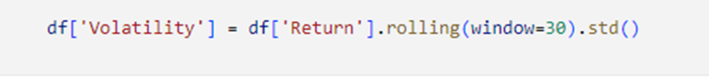 Volatility is measured as the standard deviation of returns over a 30-day window. This captures the degree of variation in returns, reflecting the asset’s risk.