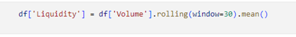 Liquidity is calculated as the average trading volume over a 30-day period. Higher average volume suggests better liquidity, indicating ease of buying or selling the asset without significant price impact.