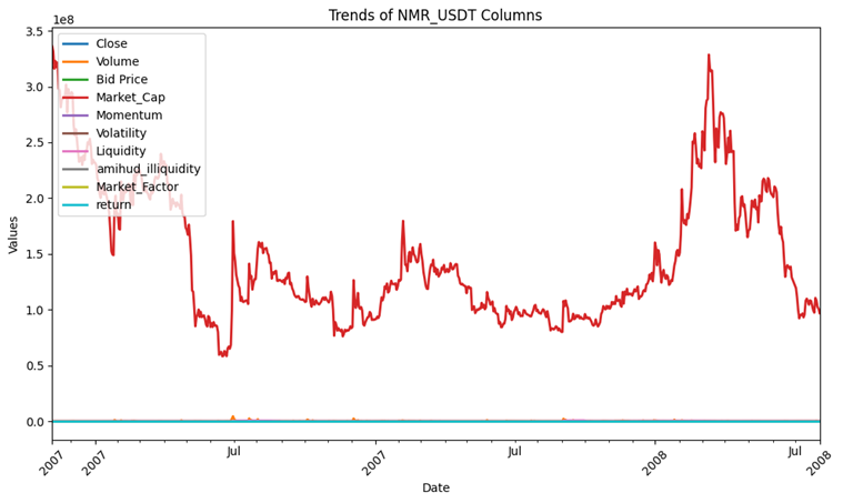 - Volume and Liquidity: A moderate correlation exists, indicating that higher trading volumes might be associated with better liquidity.