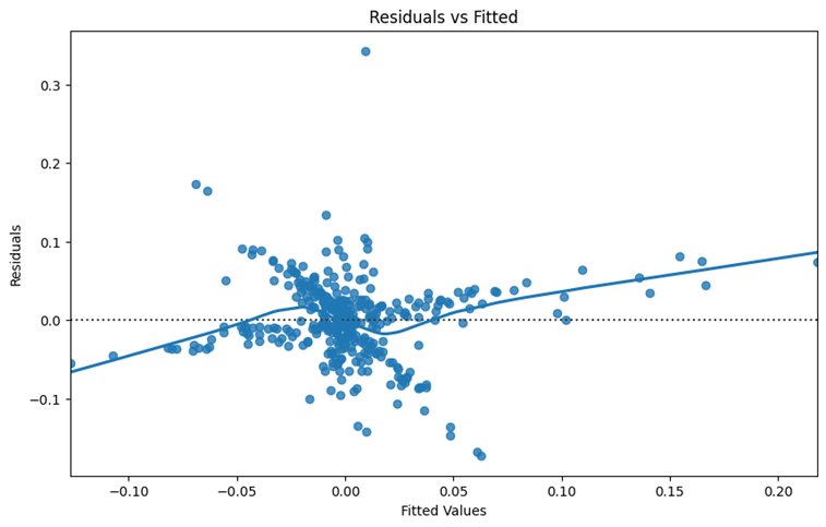 - Momentum: This factor is marginally significant, suggesting it may slightly influence returns.