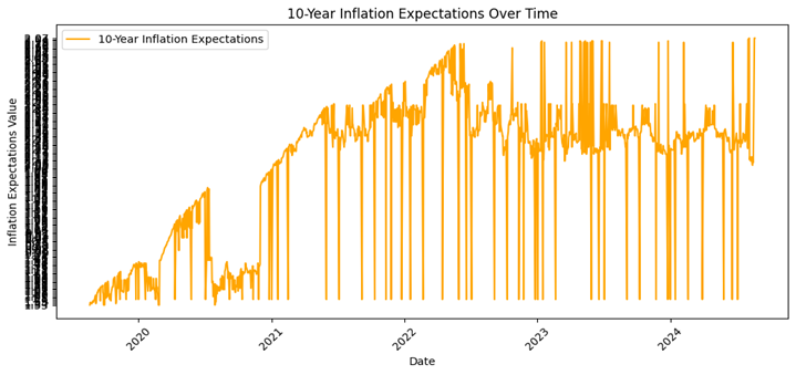 - Return: Displays a weak negative correlation, indicating that higher inflation expectations might slightly decrease returns.